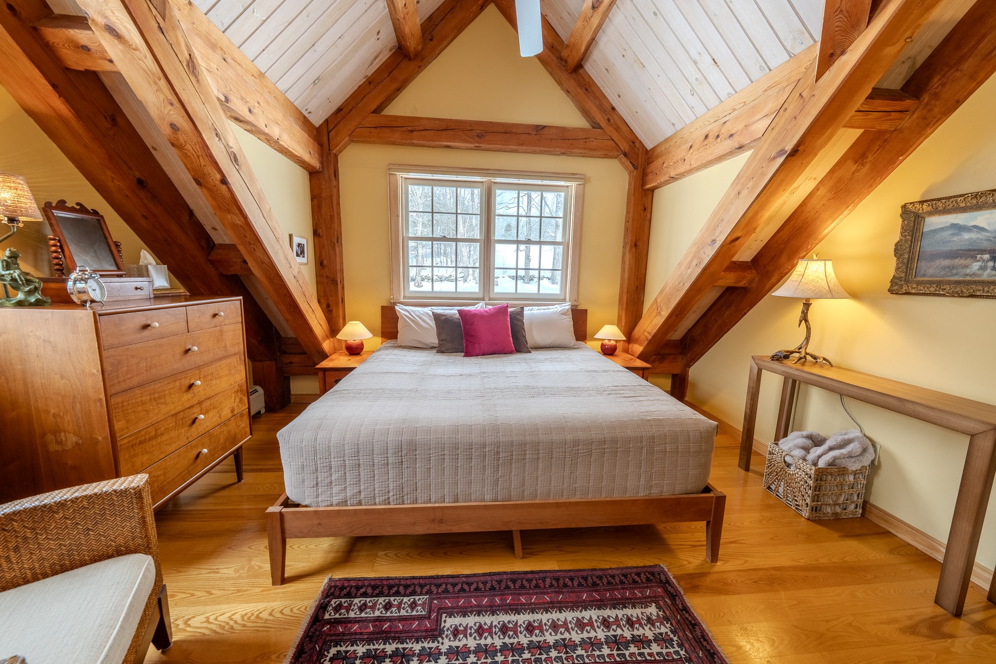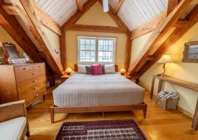 The Main House North Room mirrors the charm and comfort of the South Room, featuring a plush-yet-firm pillow-top king bed dressed in high-thread-count Egyptian cotton. The room enjoys quiet central air conditioning and offers beautiful views of Frog Meadow’s perennial gardens and sweeping meadows—an ever-changing landscape of color and light.